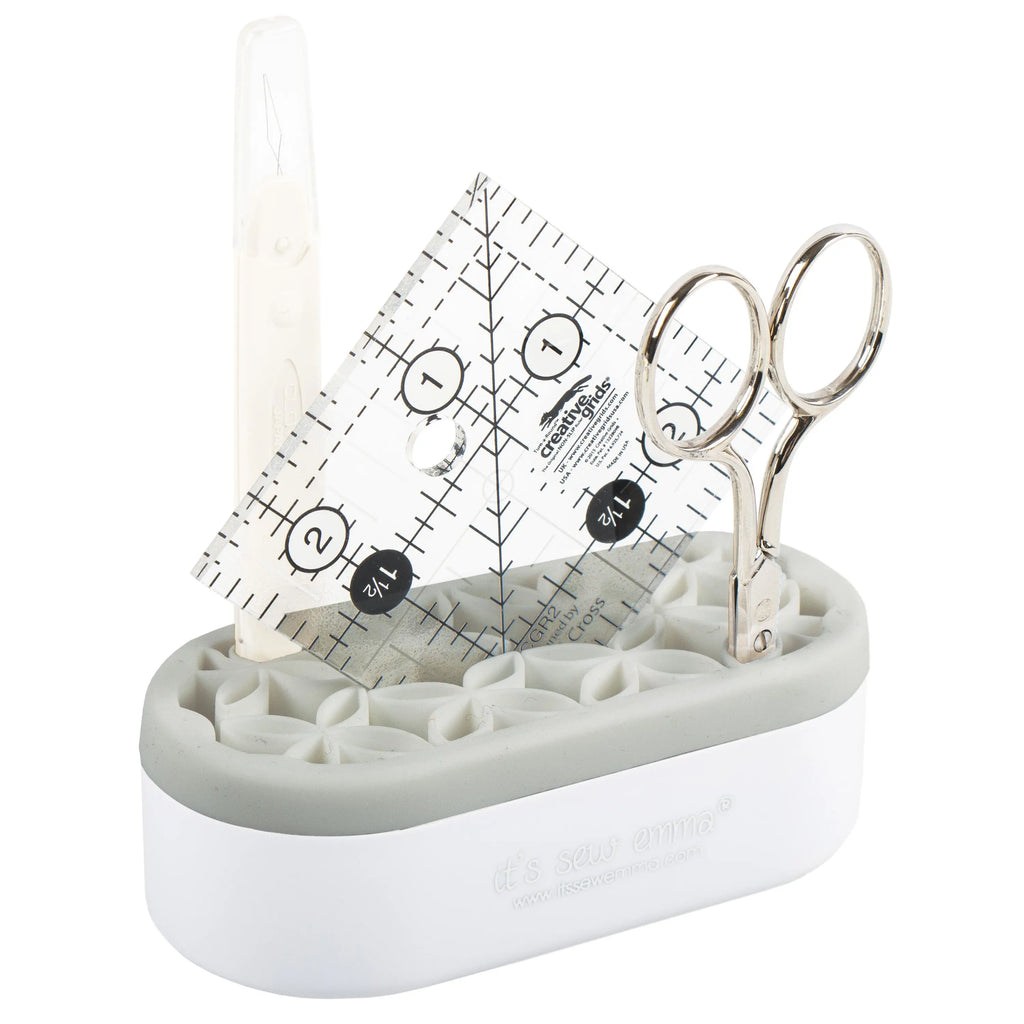 Stash ‘n Store organizer now comes in a sweet new size! The Mini Stash ‘n Store is the perfect organizer for even the tightest and smallest of spaces. With multiple pockets and a center divider, easily stow away sewing notions, marking tools and even small scissors and rulers. It’s the perfect pocket-sized travel companion for stitching on the go! The silicone pockets are smooth and offer a sturdy grip and it is also simple to clean. Available in various colors, collect them all for your sewing room, vanity and home office!