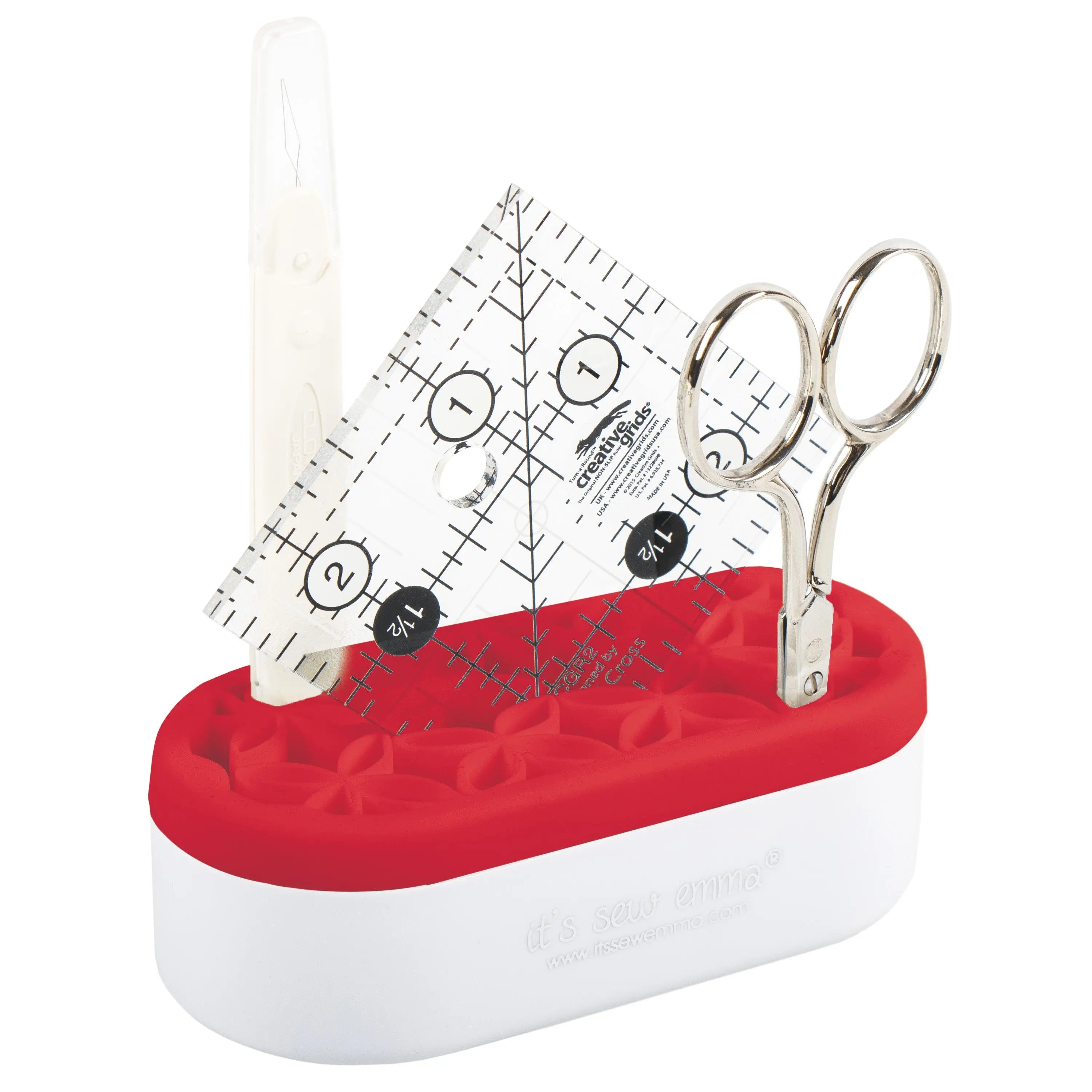 Stash ‘n Store organizer now comes in a sweet new size! The Mini Stash ‘n Store is the perfect organizer for even the tightest and smallest of spaces. With multiple pockets and a center divider, easily stow away sewing notions, marking tools and even small scissors and rulers. It’s the perfect pocket-sized travel companion for stitching on the go! The silicone pockets are smooth and offer a sturdy grip and it is also simple to clean. Available in various colors, collect them all for your sewing room, vanity and home office!