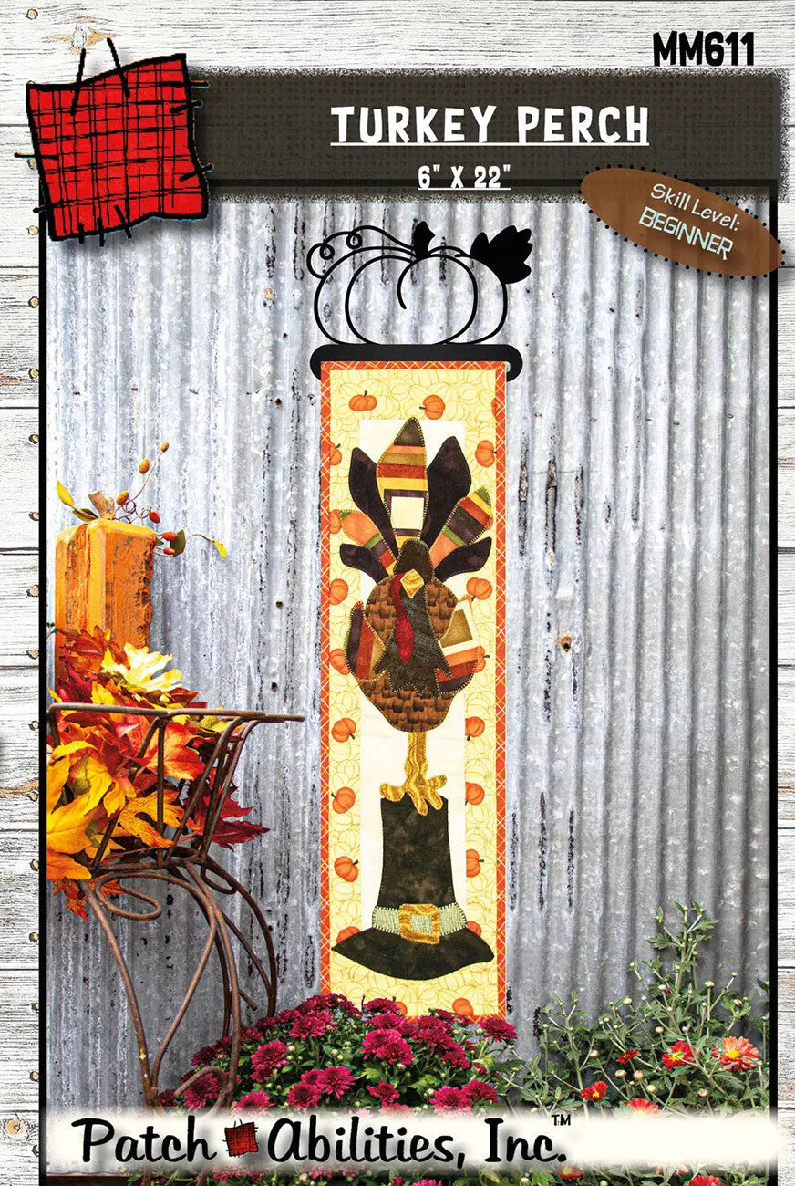 Finished size 6in x 22in. This fall themed pattern features a turkey standing on top of a pilgrim hat- perfect for Thanksgiving. Pattern includes embroidery stitch guides, beginner tips and binding instructions. Very little to no hand embroidery/embellishing required. This can be completed in one day! Skill Level: Easy, Beginner friendly machine applique.See other monthly options that go in this series! See products #PMM601 and #PMM606 - #PMM612.