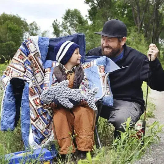 Anyone who's thrown a line in a lake or river knows how chilly it can get near the water. Next time your angler tries his or her luck, be sure to outfit them with this our new fishing-inspired digital print! Featuring bobbers, trophy fish, flies and lures, your fisherman will be dreaming of their next big catch no matter if they're at home curled up with throw blanket or out on the water
