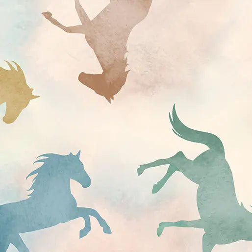 Mutli Shadow Horses Cotton Wideback Fabric per yard