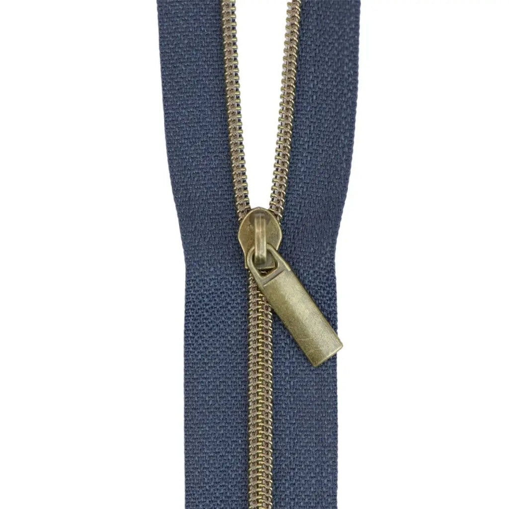 Navy #3 Nylon Antique Coil Zippers: 3 Yards with 9 Pulls