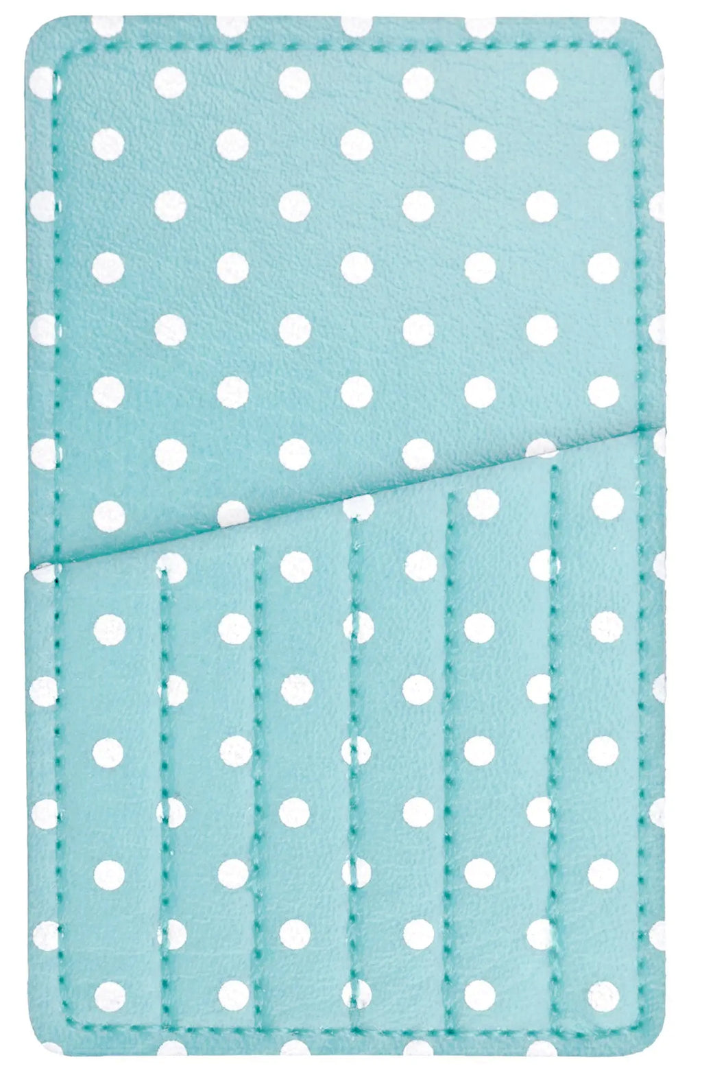 Needle Carry Card Aqua Polka Dot: Pouch is made of synthetic leather. It holds 6 needles. 2.1in (W) x 3.3in (H) (credit card size).