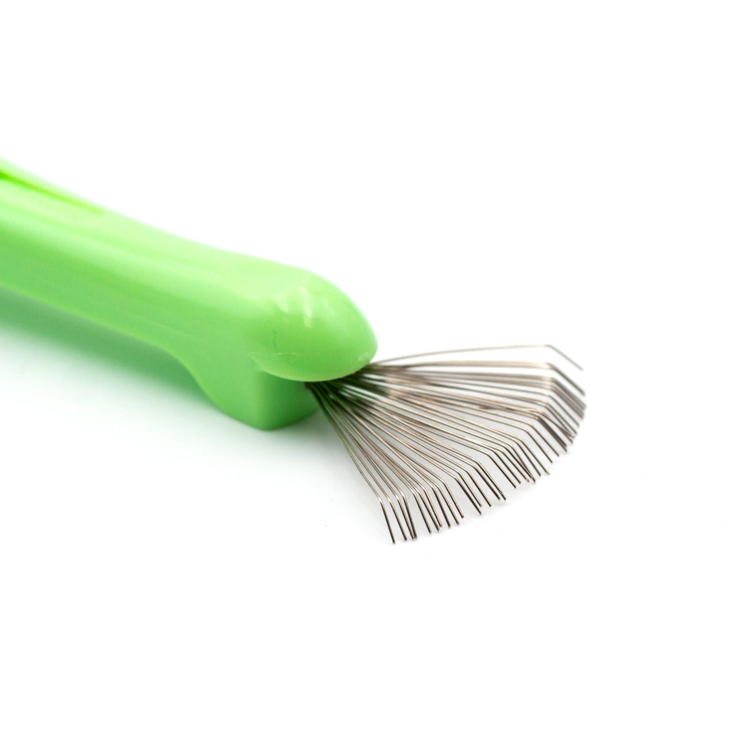 3-in-1 assisting tool! This tool provides protection from injury by securing the materials as the felting process takes place. The Claw helps keep small pieces in place while felting and it also acts as a blending tool for mixing wool roving colors. The Mat Cleaner works as a brush to remove wool from the Felting Needle Mat.