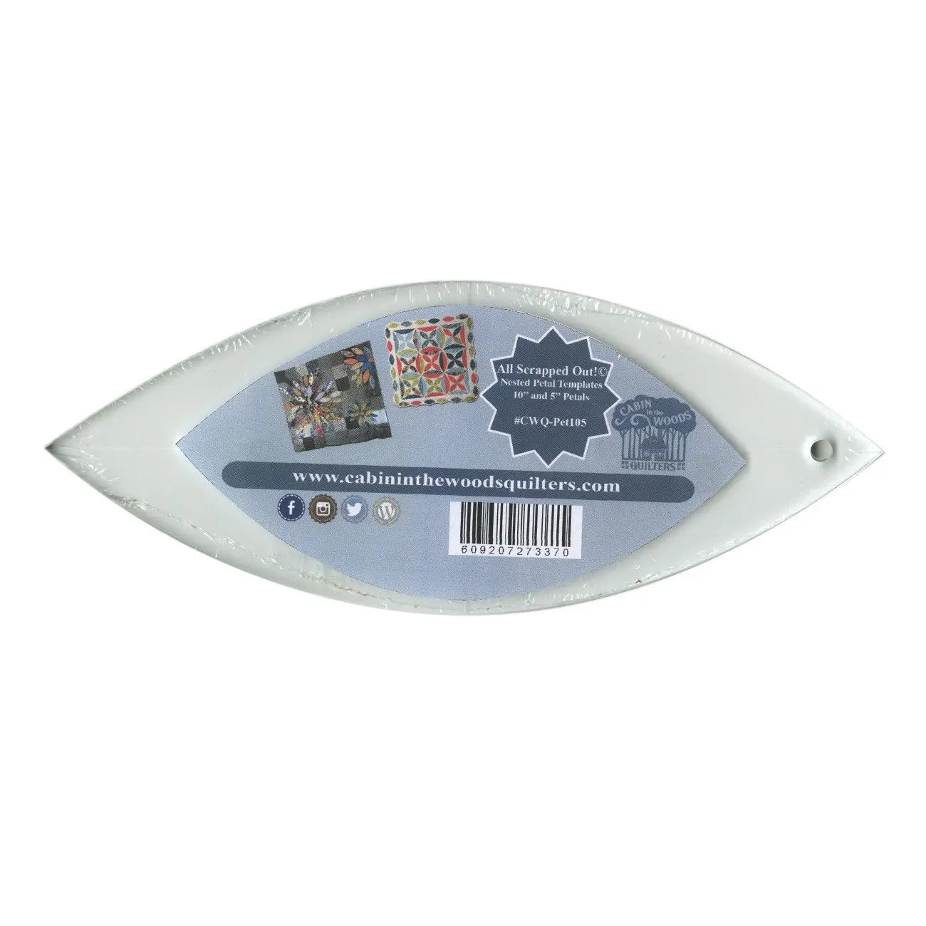 CWQ Nested Petal Templates 10in and 5in sizes with crosshairs for CWQ patterns.* Color: Clear* Made of: Plastic* Use: Quilting Template* Size: 10in and 5in* Included: Two Templates