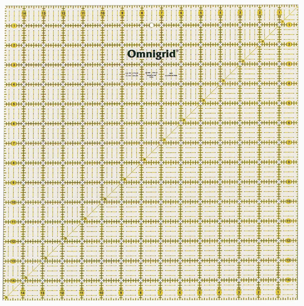 The Omnigrid 15in x 15in ruler is used to cut and check large 45 degree triangles, and to cut large rectangles when quilting. Omnigrid square rulers are used for secondary cutting of strips, and to square up finished quilt blocks. Heavy-duty durable acrylic material for use with a rotary cutter or a straight-edge blade and cutting mat.