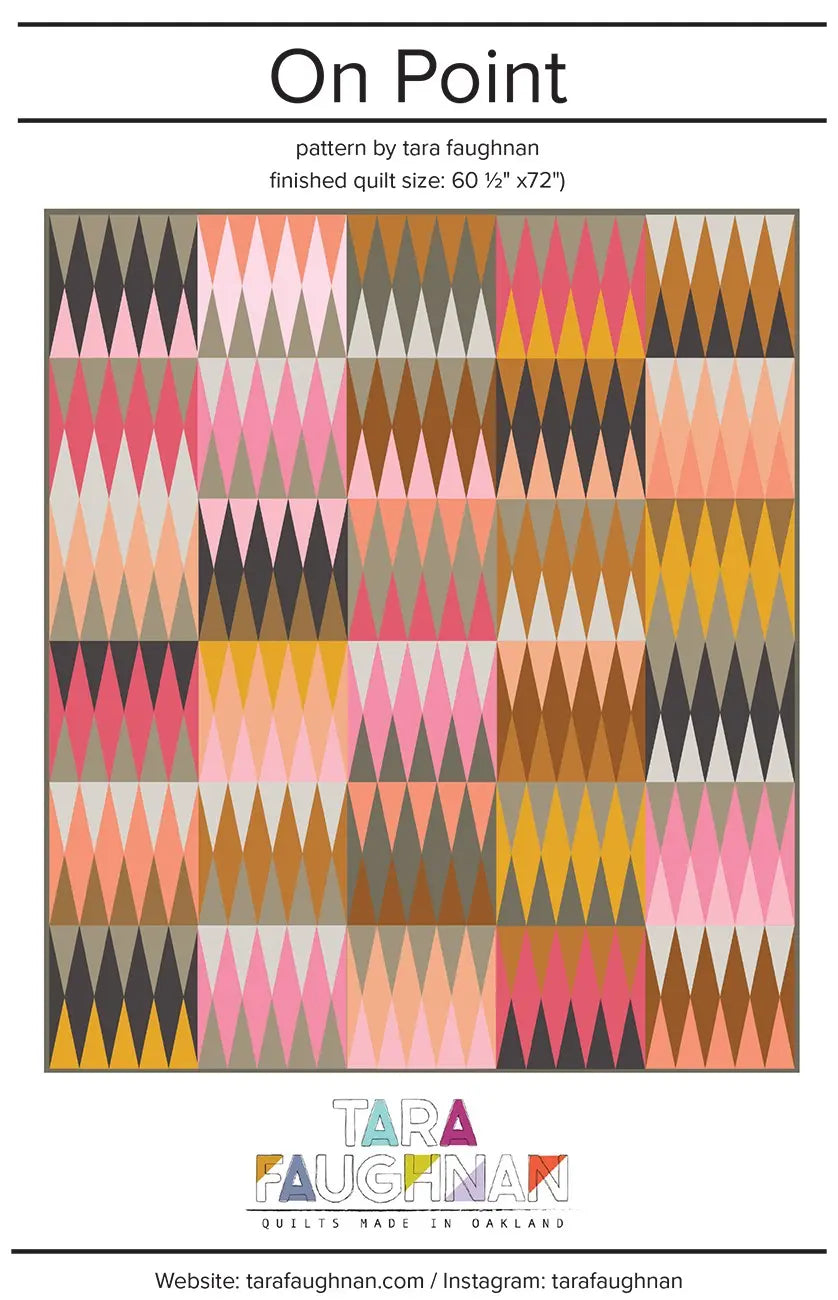 The On Point pattern teaches you how to conquer precision points using foundation paper piecing. The pattern explores a new way to paper piece; rather than foundation papers that are sewn in, foundations are reusable and don't have to be agonizingly torn out when the sewing is done! While Tara's favorite part of quilting is cutting precision pieces with the rotary cutter, that's not true for everyone! With this method, you can achieve precision points without super precise cutting!