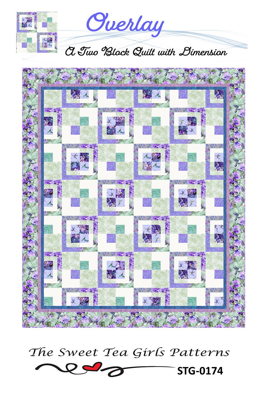 Overlay is an easily pieced two-block quilt that is great for confident beginners. The quilt can be made in either batiks or cotton prints with the same overlaid design results. The pattern includes instructions for both the 74" x 86" cover version as well as a smaller 62" x 74" size.