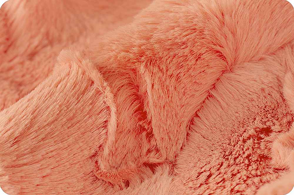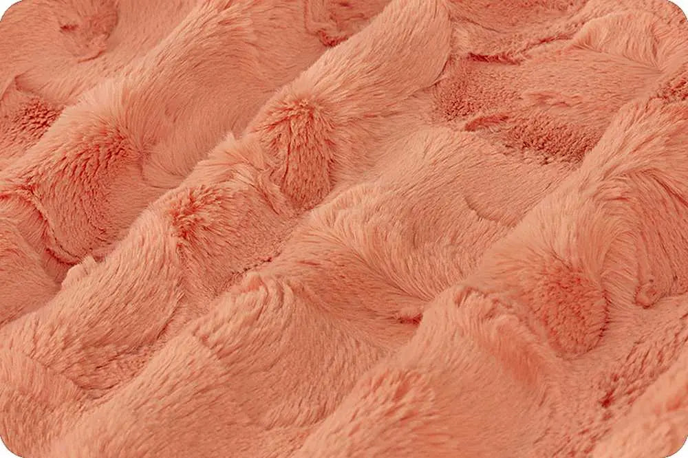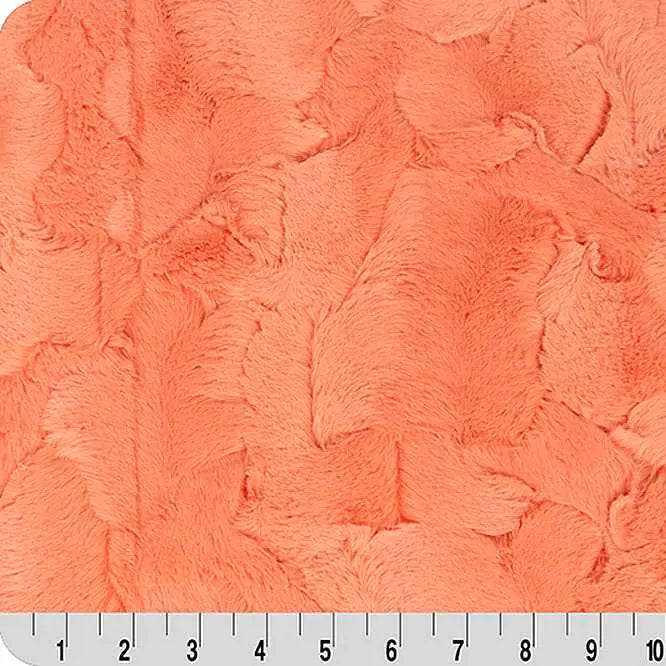 Papaya Luxe Cuddle Hide: Worry not, this "hide" isn't made with real animal hide - it's made with plush 100% polyester fibers! This luxurious Luxe Cuddle® minky fabric has a textured surface that features a chic animal hide embossed design. It's as soft as it looks, and with a 10mm pile height, it's both cozy and surprisingly versatile, too! We've seen our Luxe Cuddle® Hide sewn into everything imaginable, from baby blankets and apparel, to quilts, home decor and more.