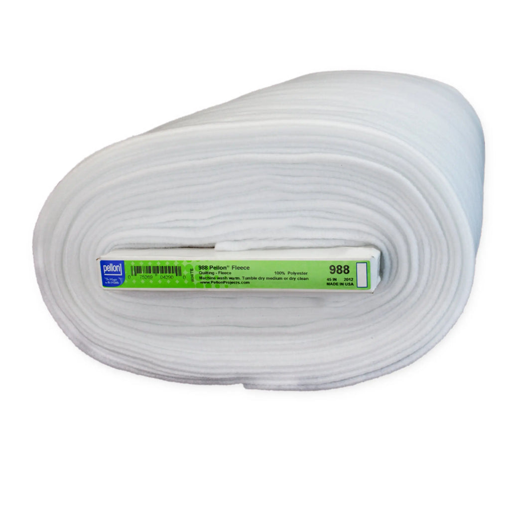 Pellon® 988 Sew-In Fleece 45" x 10 yards Bolt. Color: White. Fiber Content: 100% Polyester. Application Method: Sew-In. Sew-in fleece interfacing adds full, lofty body to fabric. Use for padded or quilted apparel and crafts.