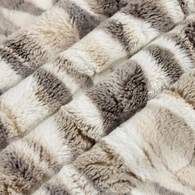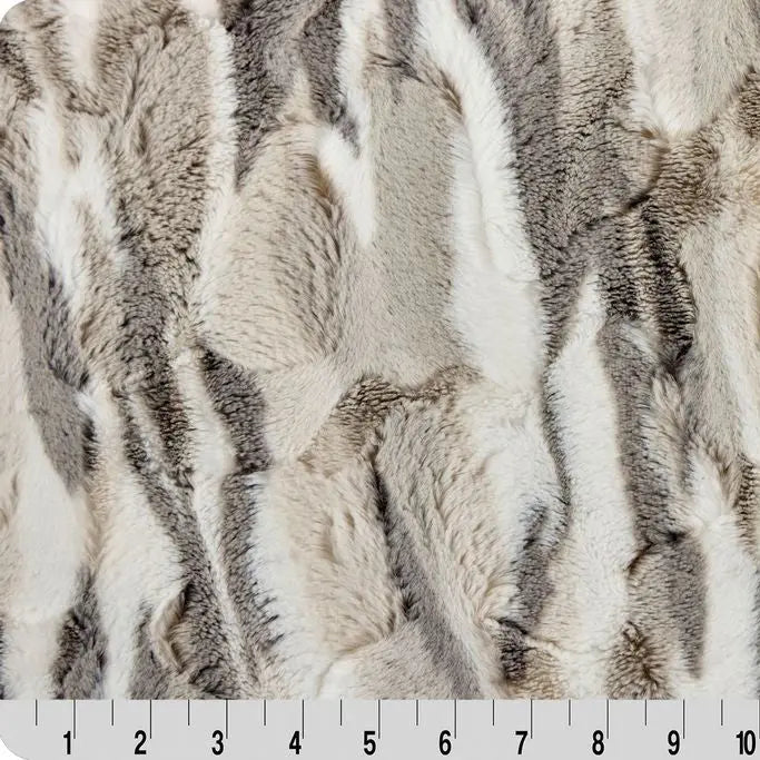 Pewter Luxe Cuddle Frosted Himalayan 58/60" Fabric per yard: Our beautiful and "luxe"-urious Frosted Himalayan Cuddle® represents the rugged and multi-colored terrain that is so unique to the Himalayas. The variety of color in our Luxe Cuddle® Frosted Himalayan is amplified by the wonderful textural crevices and waves in the nap and changes in the pile. Rich earthy browns, slate grays, and snow whites, create layers of creative opportunities in this fantastic new plush fabric.