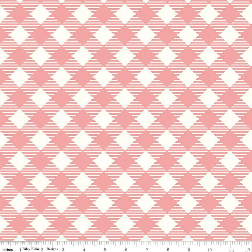 Pink Coral Lori Holt Bee Ginghams Cotton Wideback Fabric Pink Coral Bee Ginghams Cotton Wideback Fabric per yard
