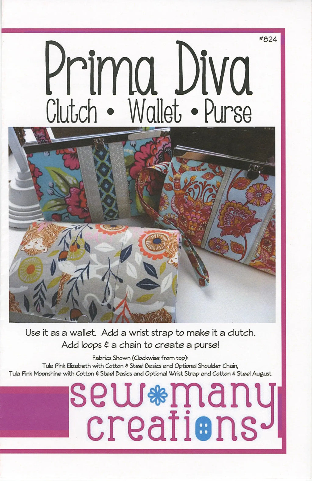 An enhanced version of the popular Diva Wallet filled with lots of pockets. Add a strap to make a wristlet or purse.