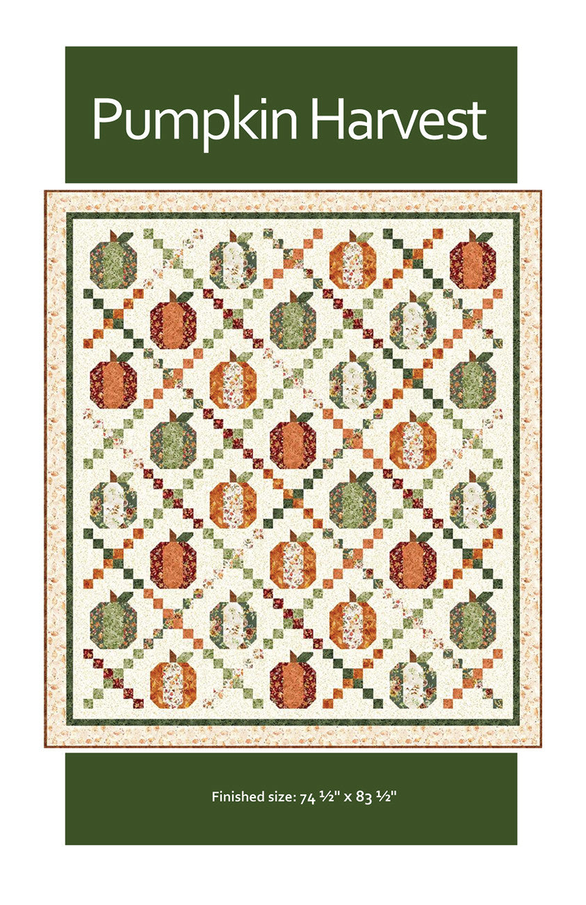 Revel in the beauty of the Fall season with a twist--romantic floral prints in a fun pumpkin setting. The finished quilt size is 74-1/2" x 83-1/2".