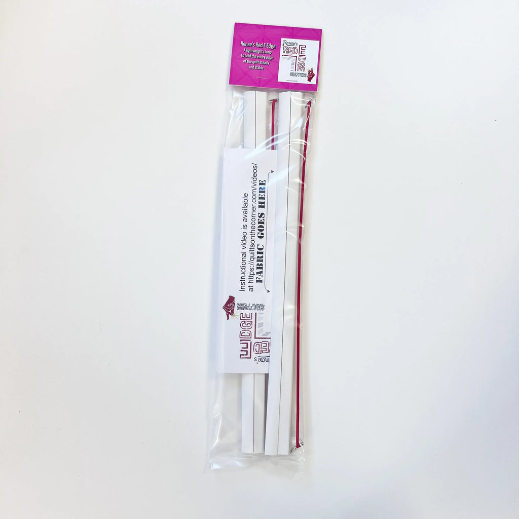Red-E-Edge Clamps are used to hold the sides of quilts loaded on ANY Longarm machine. Red-E-Edges are the BEST way to ensure you NEVER have to deal with tucks on the back of your quilt or wavy edges ever again. Using just one small clamp may leave you with uneven tension....causing a wavy border. No clamps mean you run a risk of a tuck on the back of your quilt. These light weight side clamps hold securely and evenly across the entire side of your quilt. Red-E-Edges ensure evenly spaced tension so you don't get uneven borders from a single point of a small clamp. All New UPDATED Red-E-Edges are designed to snap shut easily, open easily and still hold your back fabric with the perfect level of tension! You deserve the best. Red-E-Edges will make your quilting on ANY machine easier. Less time fussing means more time quilting. Available in 3 sizes - 12 inch, 16 inch and 19 inch *Sold as a set of two*