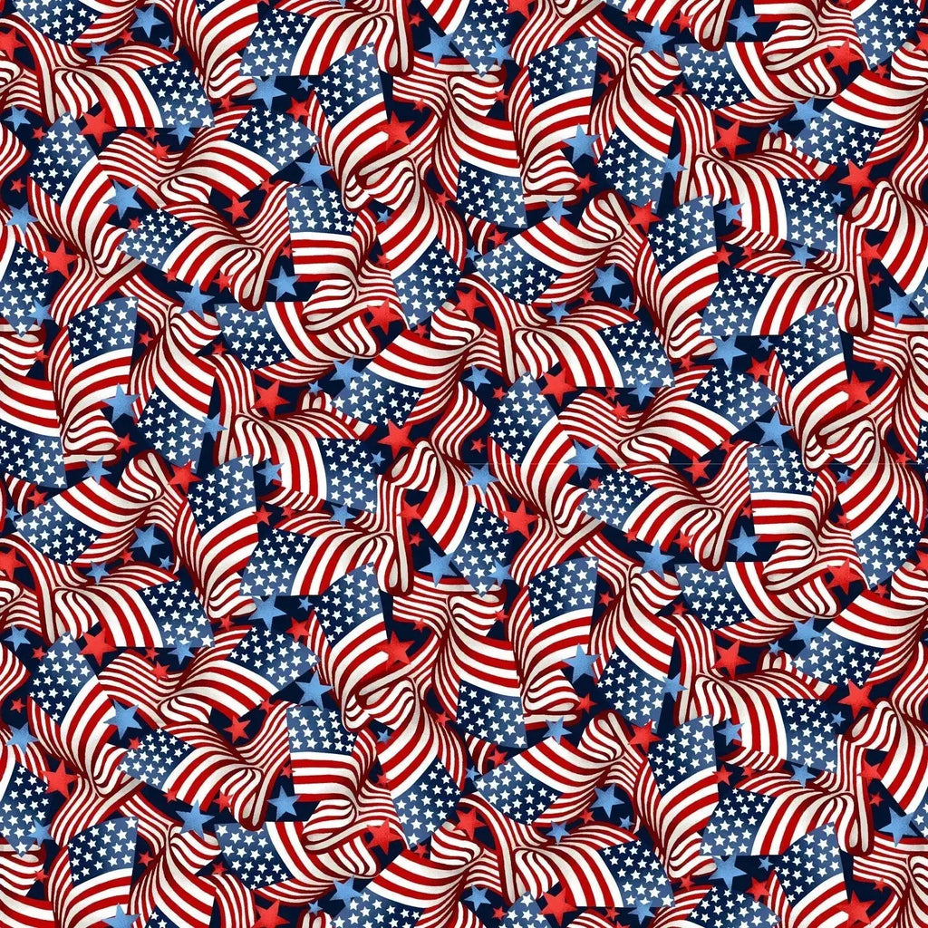 Red White and Starry Blue Too Flags Cotton Wideback Fabric