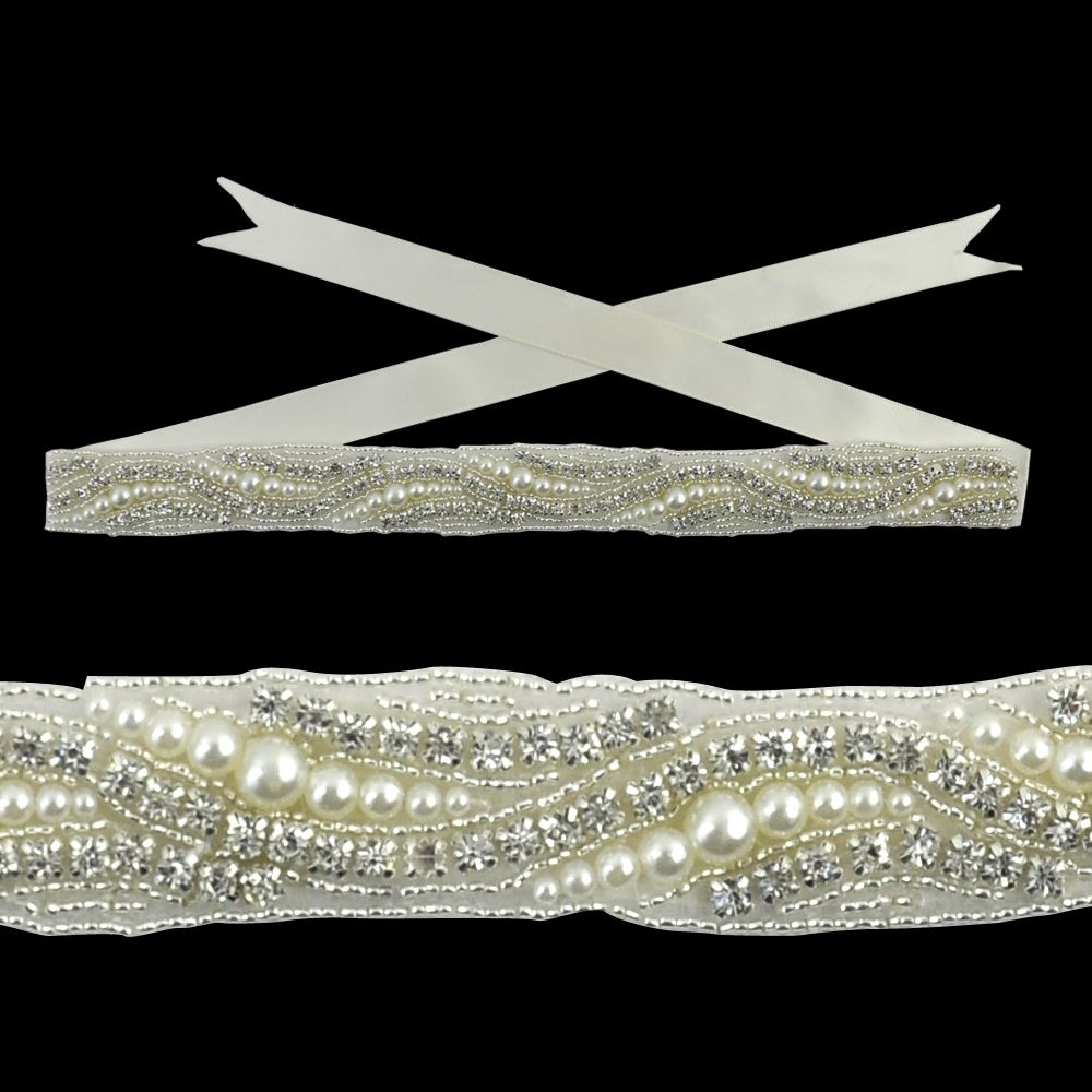 A Rhinestone Sash with Ribbon - 12"width x 1" height - Silver