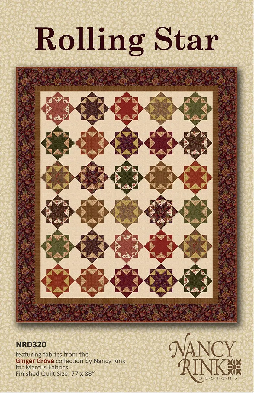 Who doesn't love repeating star-type blocks in a variety of fall colors? And it's made with several fat quarters and framed with a lush floral. The quilt shown was made with Nancy Rink's Ginger Grove fabric collection by Marcus Fabrics.