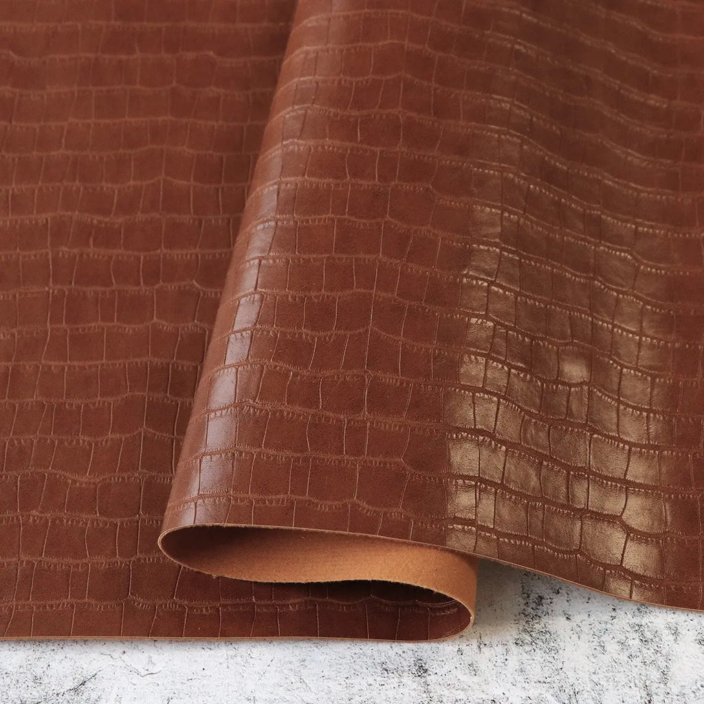 Saddle Brown Faux Crocodile Leather 1/2yds