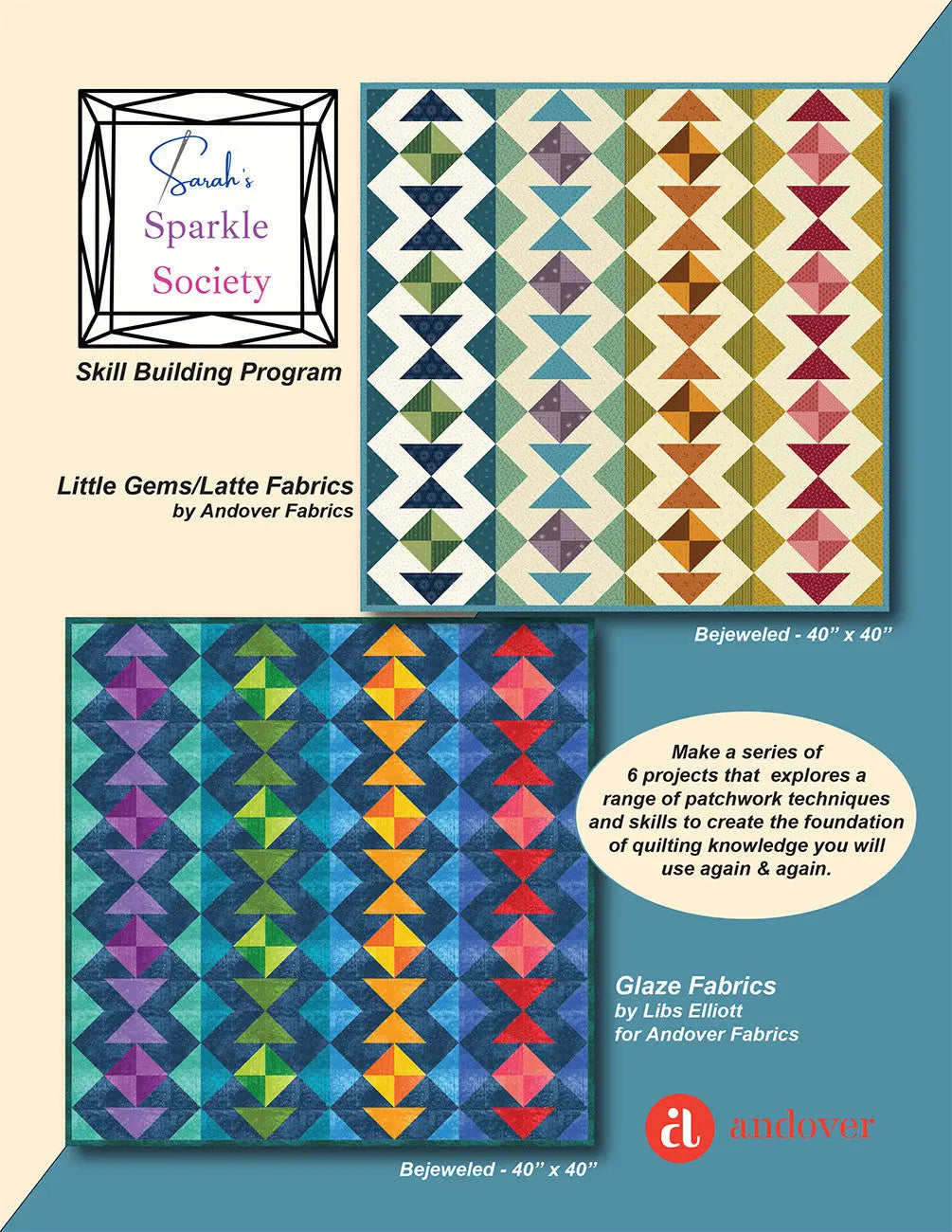 Sarah's Sparkle Society: Six-month skill-building club featuring six small quilts in 2 different colorways.