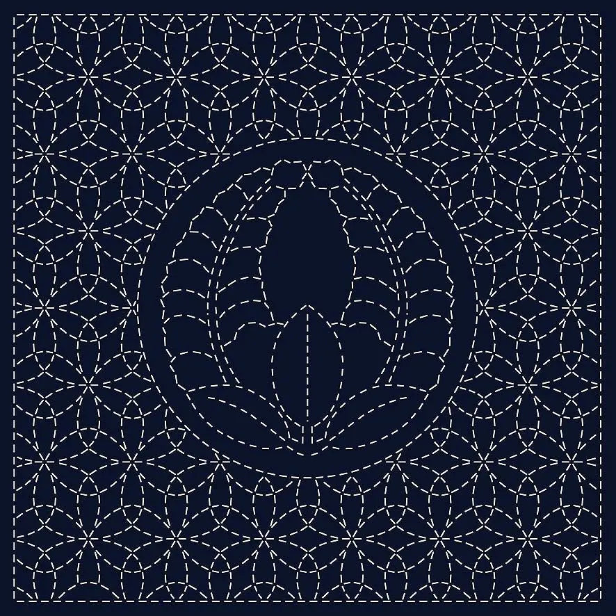 Sashiko Cloth Agari-Fuji: Sashiko design hand-printed with water-soluble ink on navy hand-dyed fabric.