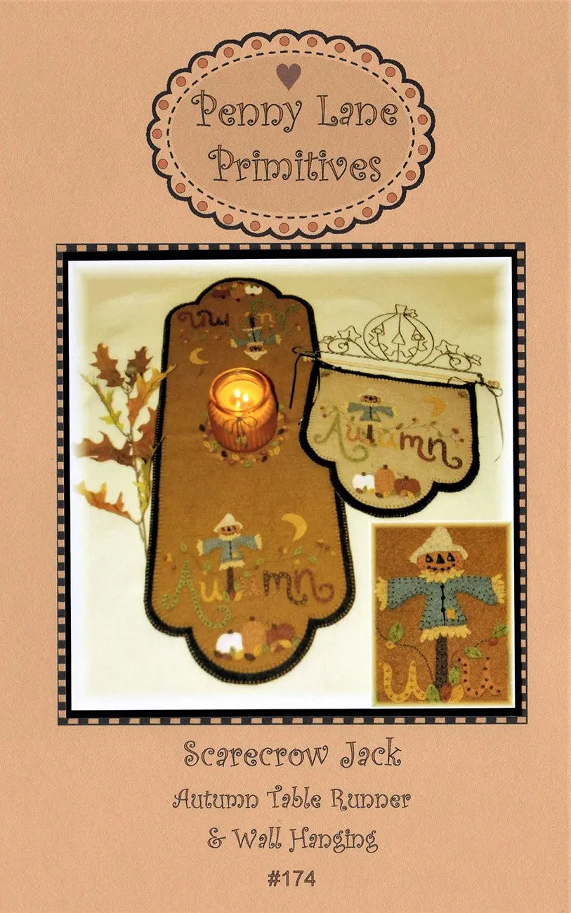 This sweet wool applique Autumn table runner measures approximately 12 inches by 32 inches and the wall hanging measures 11 inches by 12 inches. Both can be made using wool or wool felt. A fun and whimsical way to welcome Fall into your home!