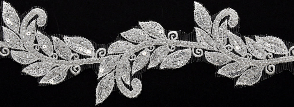 2 1/4 Inch Sequin Embroidered Trim White in 10 Yard Rolls