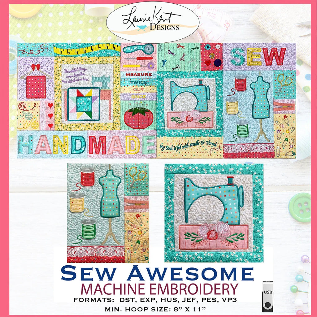 Sew Awesome Embroidery Pattern with USB