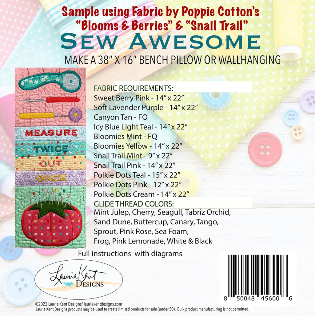 Sew Awesome Bench Pillow Design Files (USB Version)