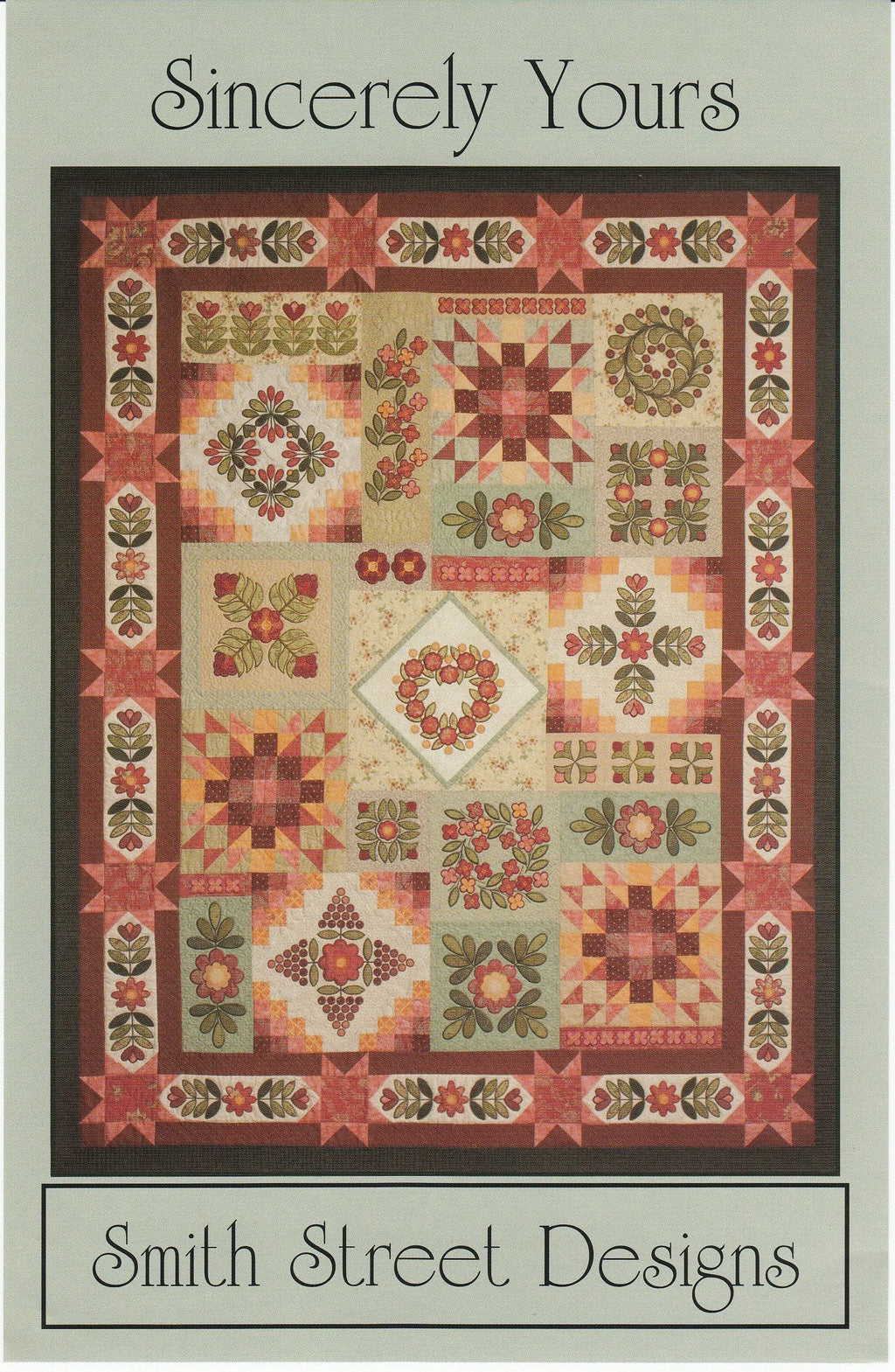 - Sincerely Yours is an embroidery machine applique quilt pattern with 9 classic style blocks and 10 variations