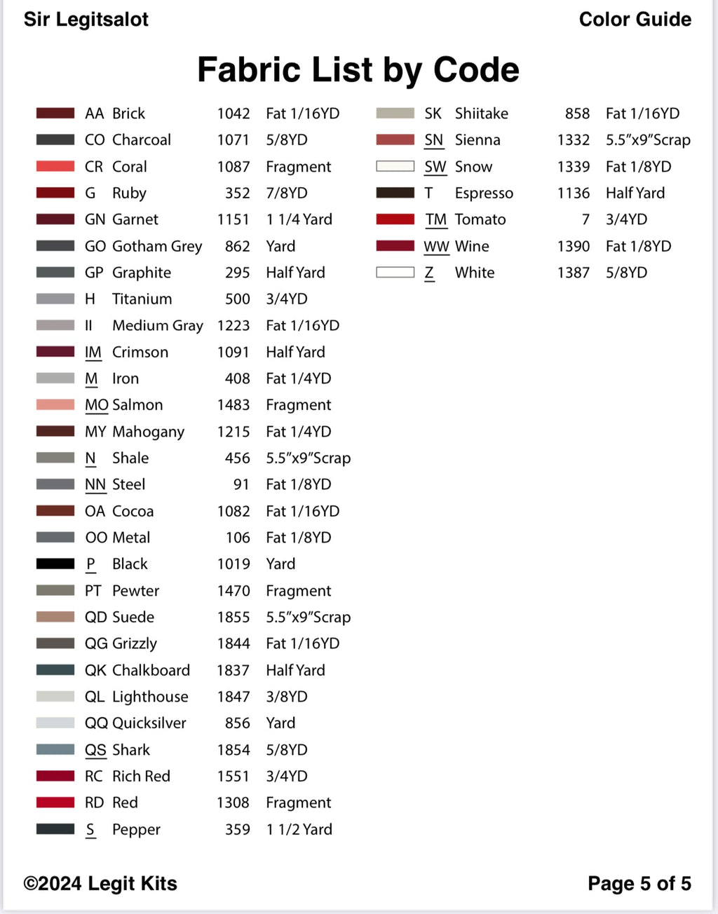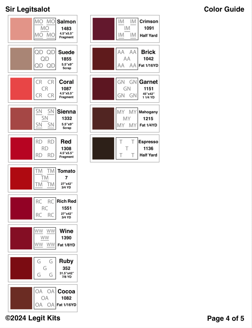 Sir Legitsalot brings to mind King Arthur and saving princesses. But these days he is on the quest for the dragon that has been terrorizing the quilters of North Full Bobbinhamshire. This design is created with rich reds and shades of grey to give his armor depth and movement. This is the perfect statement piece for history buffs and gamers or as a companion piece to Toasty the Dragon. Don't let Sir Legitsalot go on quests without you!