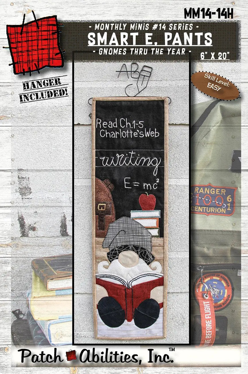 INCLUDES ABC hanger. This gnome is ready for back to school with his books and backpack. Super beginner friendly pattern uses traditional raw edge applique with fusible web.