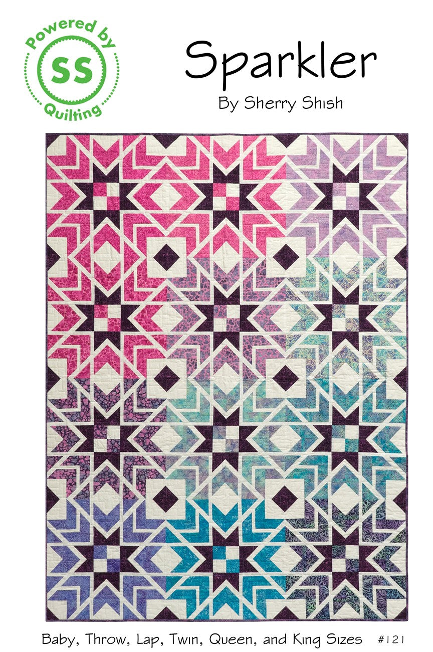 Sparkler is a modern barn quilt block inspired quilt. The pattern comes in 6 different sizes. The cover quilt finishes at 54in x 72in. Create this traditionally pieced beautiful quilt with fun secondary designs! The pattern is nine pages.