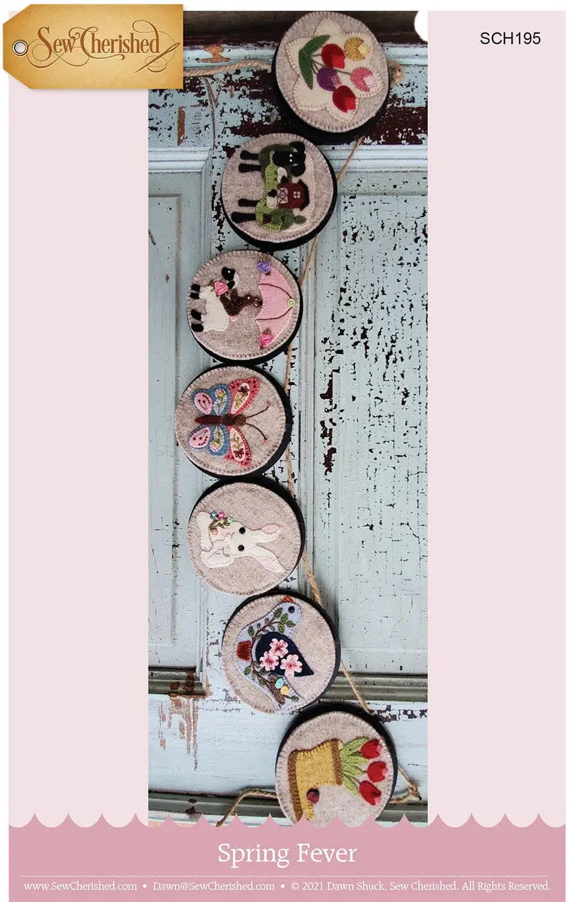 Welcome Spring with this fun banner. Made with wool applique, each finished circle measures 4.5". Pattern includes instructions for all 7 circles. Attaches easily to black metal banner.
