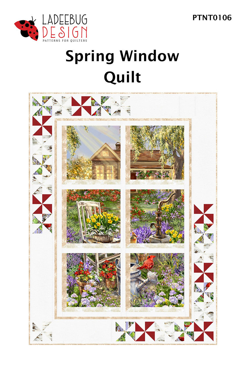 Features Timeless Treasures' Spring Song collection. Finished size: 38" x 51". Confident Beginner - precise cutting and multi-block construction. This beautiful attic window quilt is quick and easy to put together. With a "cheater" square in the corner, there are no difficult miters or "y" seams. Add the asymmetrical pinwheel border to finish the design. This design can be made with any 24" panel.
