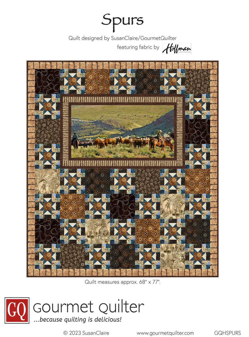 Quilt measures approx. 68" x 77" Featuring a picture panel, this quilt takes you out on the range! Pieced blocks and a framed picture, with co-ordinating fabrics make this a must-make quilt!