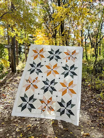Star of Wonder is the perfect pattern for Fat Quarter Bundles with coordinating fabrics. Mix and match fat quarters with similar volumes/colors to create the color balance and aesthetic that is most pleasing to you. You can also make this completely scrappy and cozy with your favorite fabrics you have been holding onto. Just arrange each star with varying saturations that are dark, medium, and light.