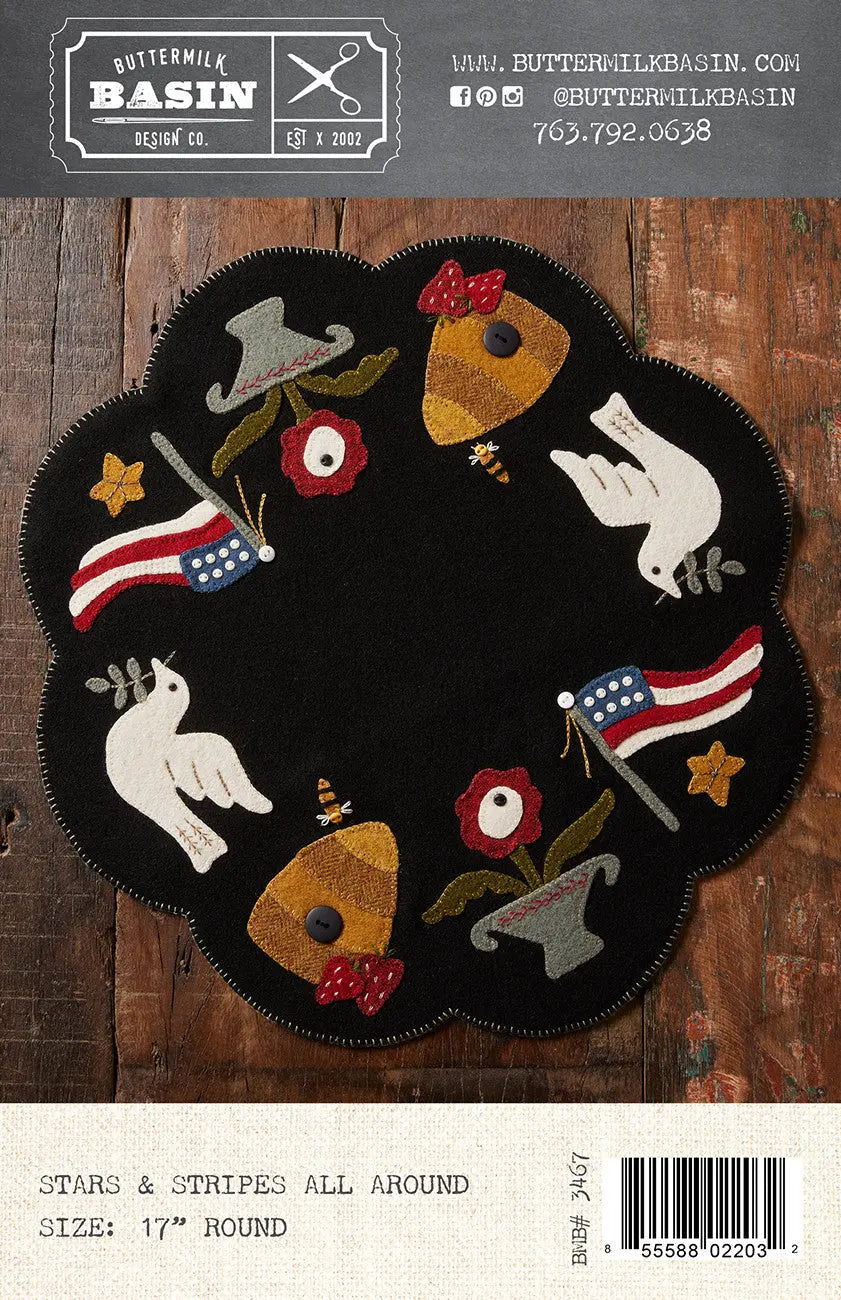 Size: 17 inches in diameter. Flags, flowers & red, white & blue, this mat is filled with glory and sparks excitement as it welcomes in the 4th of July!