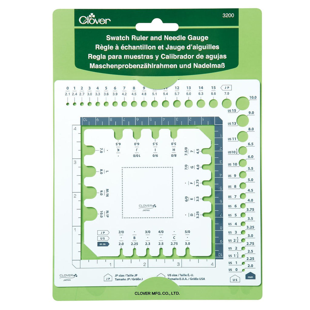 A multi-purpose tool for knitting and crochet. Measure your crochet hook or knitting needle size in US, metric and Japanese standard sizes. The Swatch Ruler allows you to isolate a section of your work to easily count both stitches and rows.