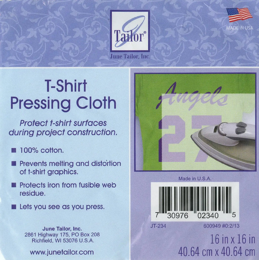 T Shirt Pressing Cloth: Protect t-shirt surfaces during project construction. 100% cotton. Reduces potential for melting and distortion of t-shirt graphics. Protects iron from fusible interfacing residue. Lets you see as you press. 16in x 16in size, ideal for t-shirt quilt construction. Made in U.S.A.