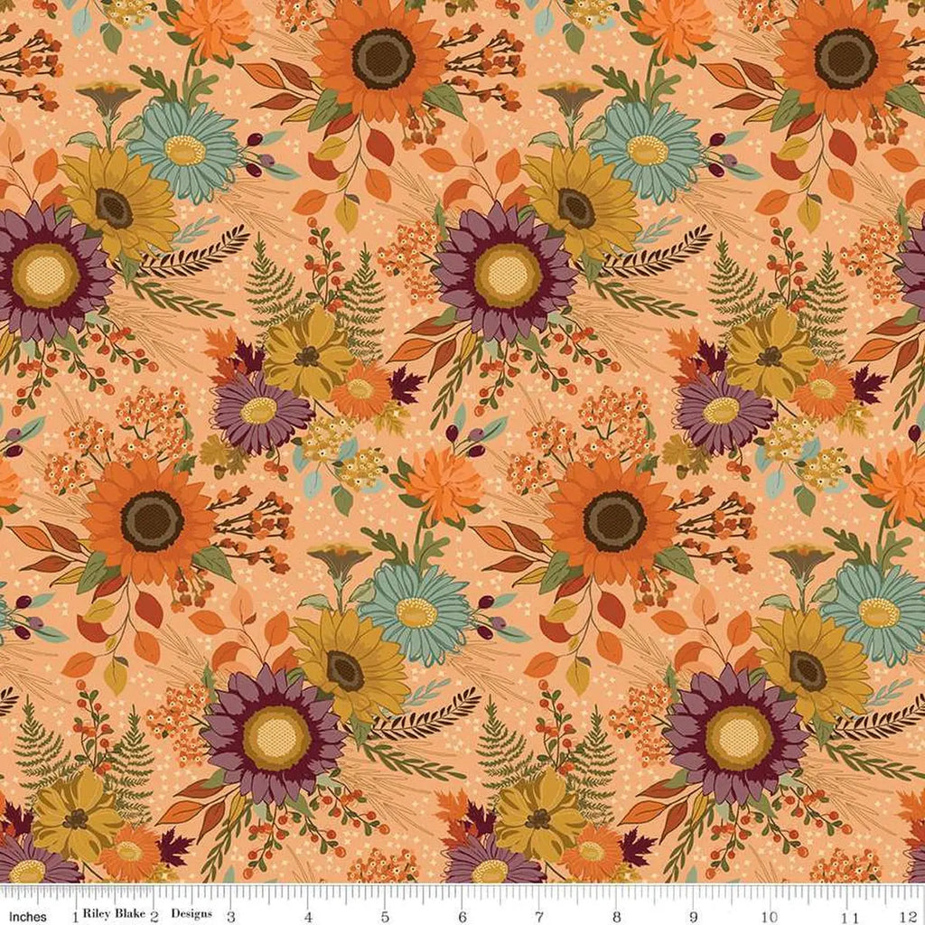 The Awe of Autumn by Sandy Gervais for Riley Blake Designs is great for quilting, apparel and home decor. This print features clusters of flowers and leaves.