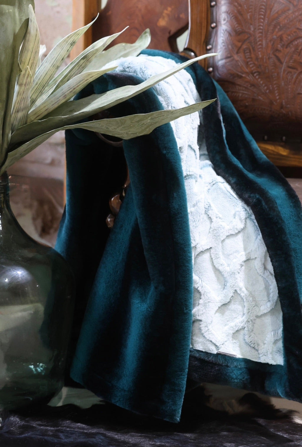 Meet The Bay Mist Blanket: A double-sided Minky blanket featuring Waterlilly Bailey Bunny on one side and rich Neptune Denver on the other. Indulge in the ultimate embrace with our luxurious, handmade Minky blanket, crafted with care in the USA for unmatched softness and plushness, offering an unparalleled cozy experience.