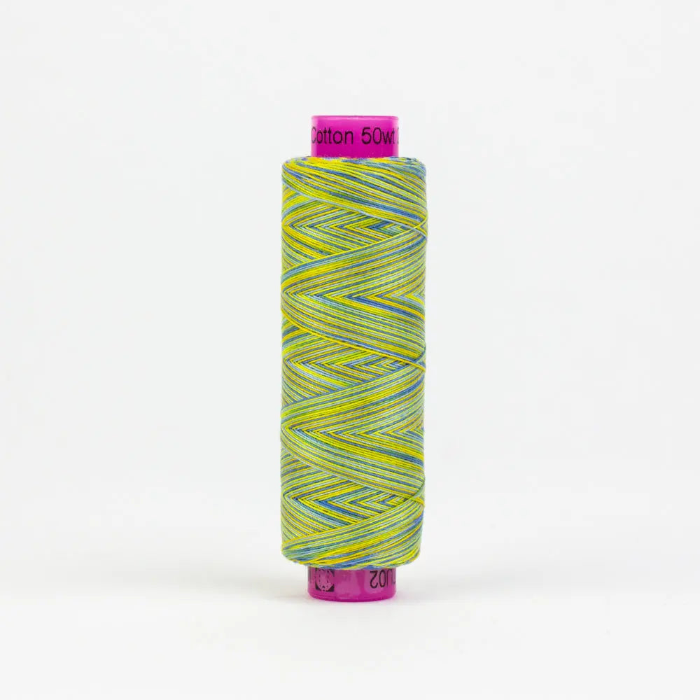 Tutti™ is a 50wt, 3-ply Egyptian cotton thread, double-gassed and mercerized to create a wonderfully soft, clean, and lustrous finish. Free of waxes or coatings that can cause build up in machines, Tutti™ is a super low lint thread available in 41 lovely variegated colours.