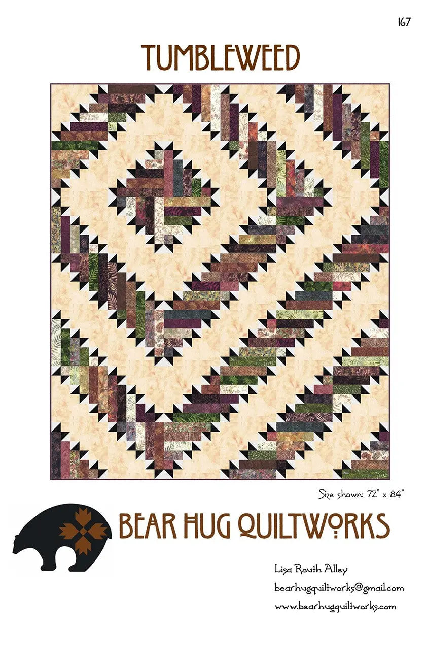 Beginner friendly quilt that uses pre-cut strips such as Hoffman Bali Pops. Pattern includes instructions for five sizes from crib to king size.