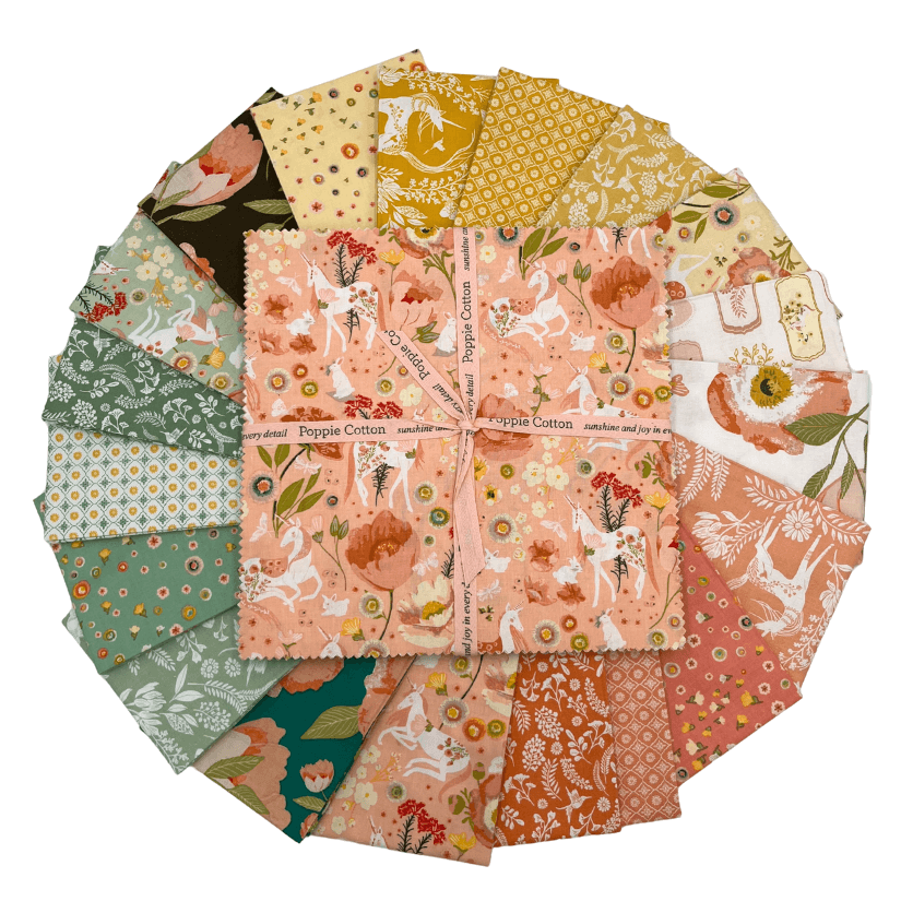 Unicorn Dreams by Poppie Cotton is a magical collection that sparkles with whimsy and charm. Featuring enchanting unicorns, delicate florals, and soft pastel colors, it captures the wonder of childhood imagination and brings a playful, dreamy touch to any project.