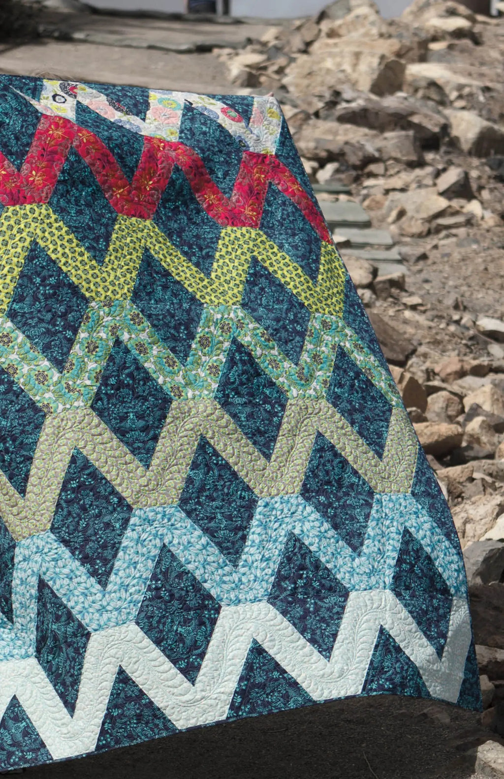 Baby 35in x 48in Lap 55in x 72in Twin 62in x 84in Queen 90in x 96in King 104in x 108in. Varsity is a great pattern for featuring larger scale prints. Uses Creative Grids CGRT12560 - 60 Degree Triangle 12-1/2in Ruler