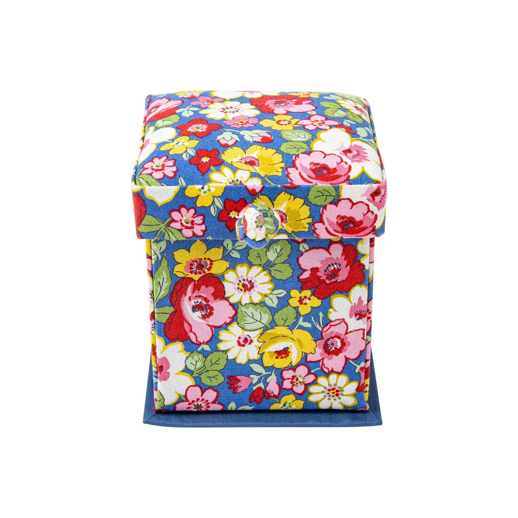 The Liberty Fabrics Victorian Style Sewing Box provides fashionable storage for all your essential tools. It contains sewing scissors, tape measure, needle threader, stitch ripper, thimble, buttons, colored threads, needles, pins, and a pin cushion. The sewing box comes in a variety of Liberty Fabrics prints and is the ideal starter kit or gift for sewists, quilters, and makers. Spot clean only. Approximate size is 4 3/4" x 4 1/2" x 4 1/2".