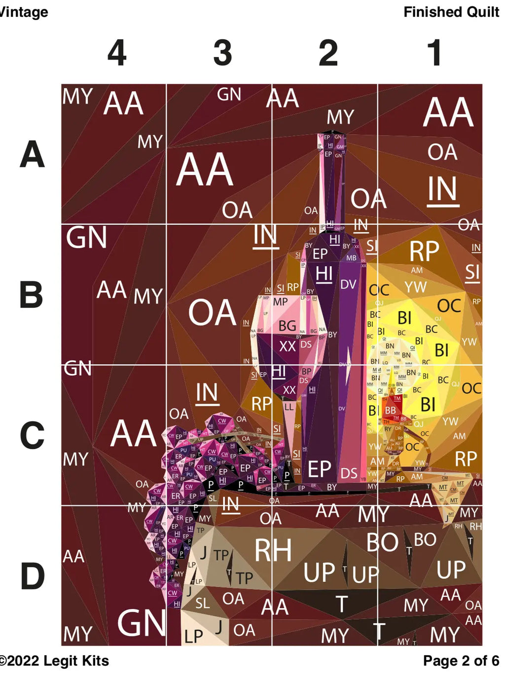 This is a pattern only and does not include fabric. Knowledge of foundation paper piecing is required to assemble this work of art (the basics of this technique can be learned in a short amount of time by watching instructional videos on YouTube or the like).