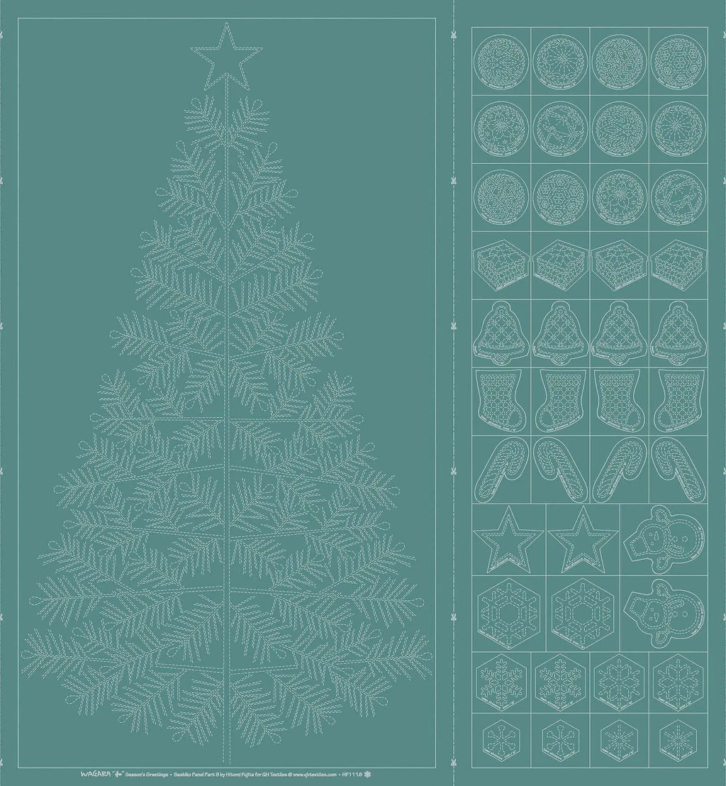 Wagara Sashiko Panel Season's Greeting Teal Blue