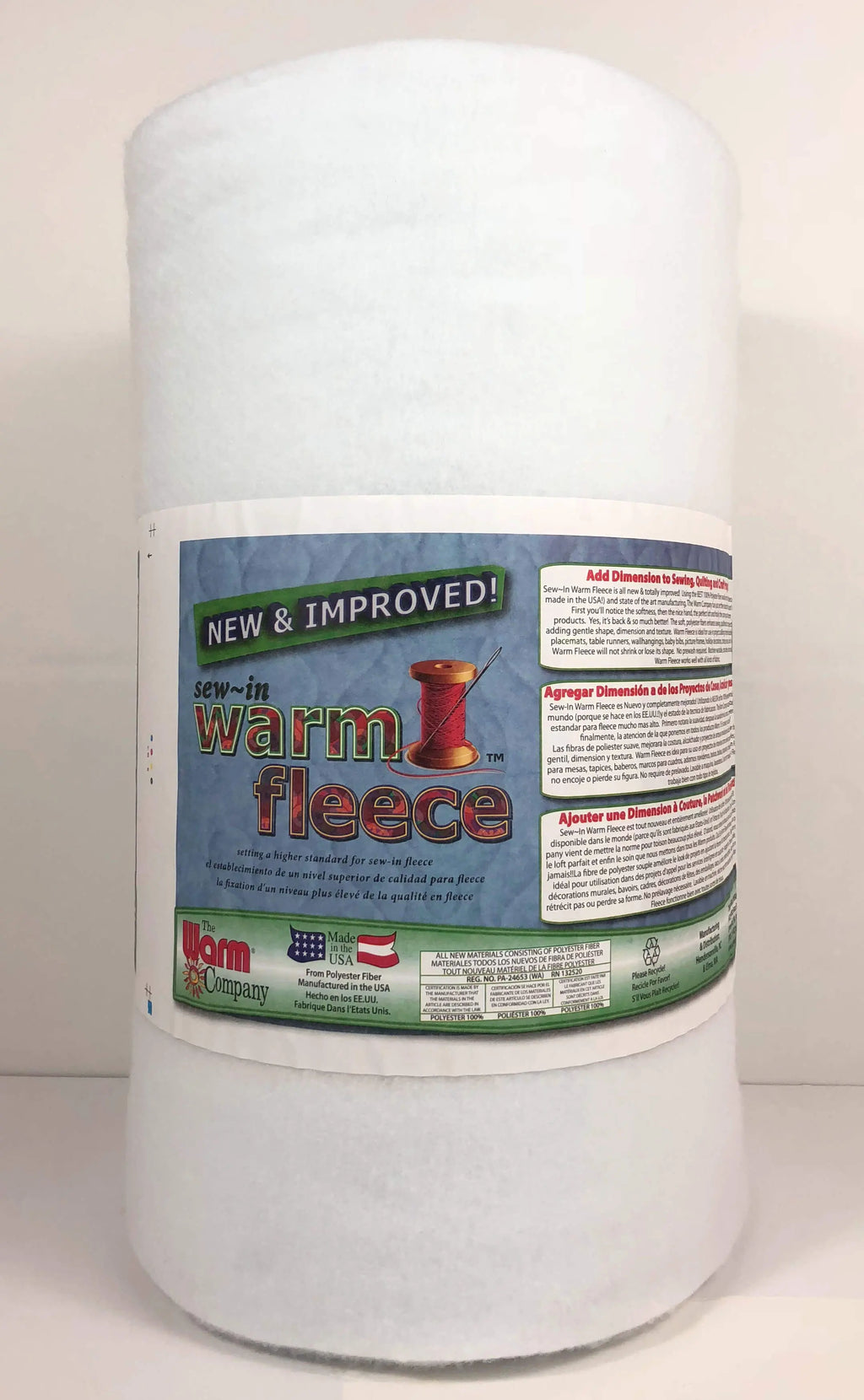 Sew-In Warm Fleece offers plush 100% U.S.-made polyester fibers, adding soft loft and structure without shrinking or losing shape. Ideal for tactile quilting and craft projects.